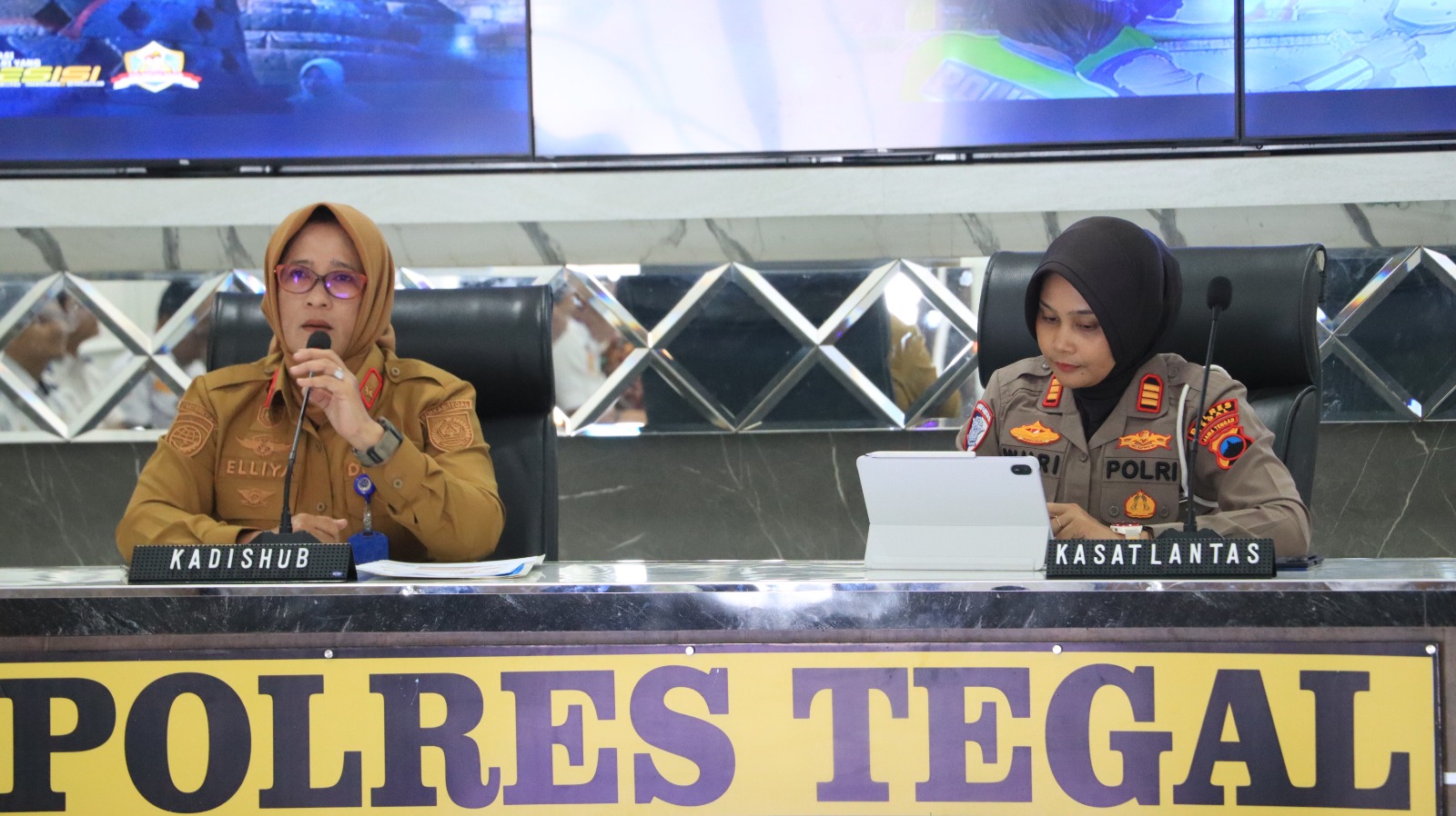 MEMBAHAS Polres Tegal bersama sejumlah OPD Kabupaten Tegal membahas berbagai persiapan menjelang Lebaran 2026 pada Forum Group Discussion / FGD di Gedung Tantya Sudhirajati Mapolres Tegal belum lama ini.