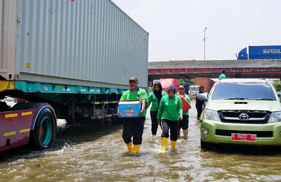 Pantauan di ruas Jalan Kaligawe, Kota Semarang, menunjukkan, bantuan tersebut disalurkan oleh Dinas Sosial (Dinsos) Provinsi Jawa Tengah dengan dukungan personel Satpol PP Jateng. Mereka membantu para sopir truk, kontainer, dan pengguna jalan yang terjebak banjir di lokasi tersebut.