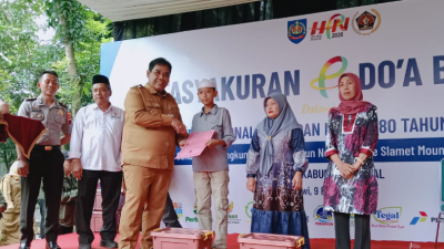 SLAWI, smpantura – Wakil Bupati Tegal, Ahmad Kholid membagikan sembako janda-janda di Desa Pakembaran, Kecamatan…