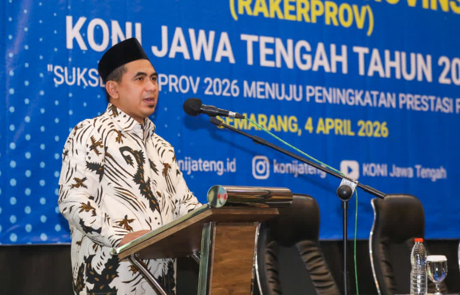 Hal itu disampaikan Wakil Gubernur Jawa Tengah Taj Yasin Maemoen, mewakili Gubernur Ahmad Luthfi, usai Rapat Kerja Provinsi (Rakerprov) Komite Nasional Olahraga Indonesia (KONI) Jawa Tengah Tahun 2026, dengan tema “Sukses Porprov 2026 Menuju Peningkatan Prestasi PON 2028”, di Hotel Grasia Semarang, Sabtu, 4 April 2026.