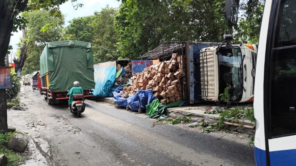 Truk Muat Mi Instan Terguling di Jalur Pantura Kendal