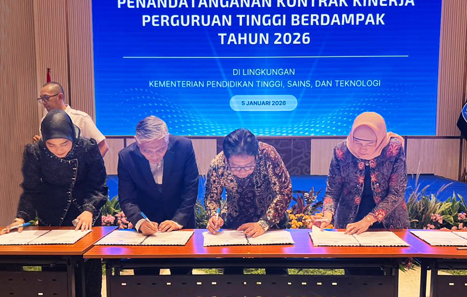 Dukungan serupa juga di torehkan ratusan pucuk pimpinan perguruan tinggi lainnya. Dengan menandatangani Kontrak Kinerja Perguruan Tinggi Berdampak Tahun 2026. Dan di saksikan langsung Mendiktisaintek Prof Brian Yuliarto ST MEng PhD, di Jakarta, Senin (5/1).