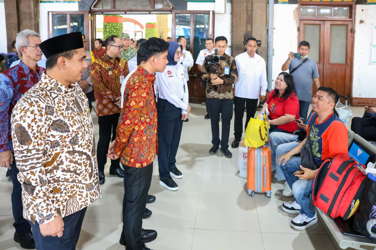 SEMARANG, smpantura — Wakil Presiden (Wapres) Gibran Rakabuming Raka meninjau pelayanan di Stasiun Tawang Semarang saat libur Natal dan tahun baru (Nataru), Kamis (25/12/2025). Wapres meninjau dengan di dampingi Wakil Gubernur (Wagub) Jawa Tengah Taj Yasin Maimoen (Gis Yasin).